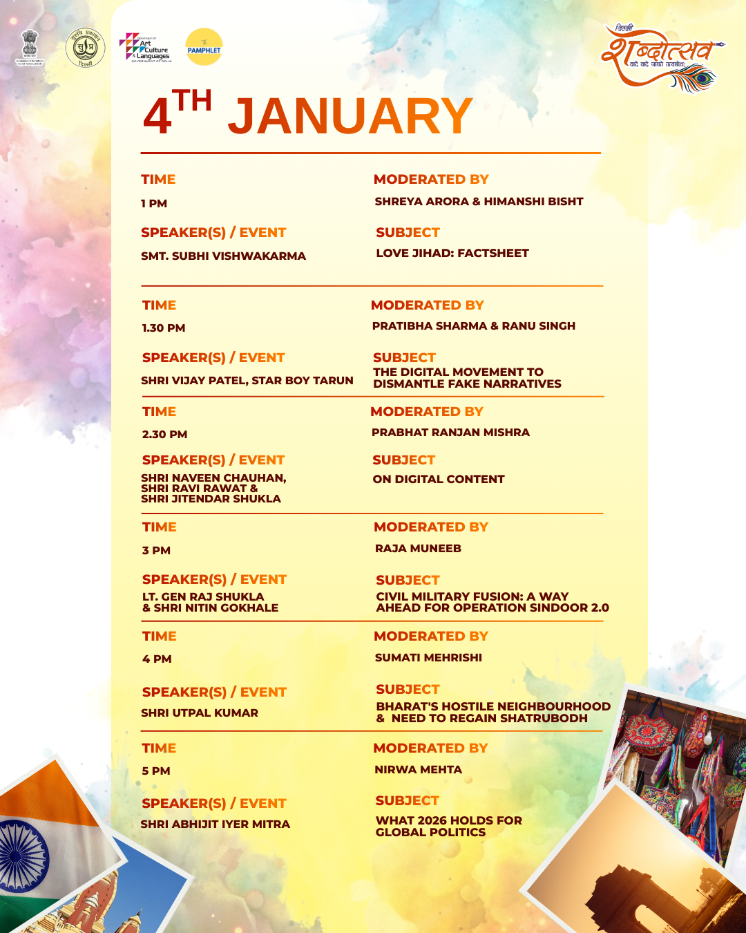 Delhi Shabdotsav 2026 is where Bharat’s stories, songs, and ideas come alive-a three-day festival celebrating the spirit of Bharat Abhyudaya, the rising confidence and creativity of a new Bharat rooted in timeless civilisation. Organised by Suruchi Prakashan with the support of the Hindi Academy, Government of Delhi, this fest brings 100+ authors, filmmakers, thinkers, journalists, legal minds, and youth icons together on three buzzing stages at Major Dhyan Chand Stadium, New Delhi.